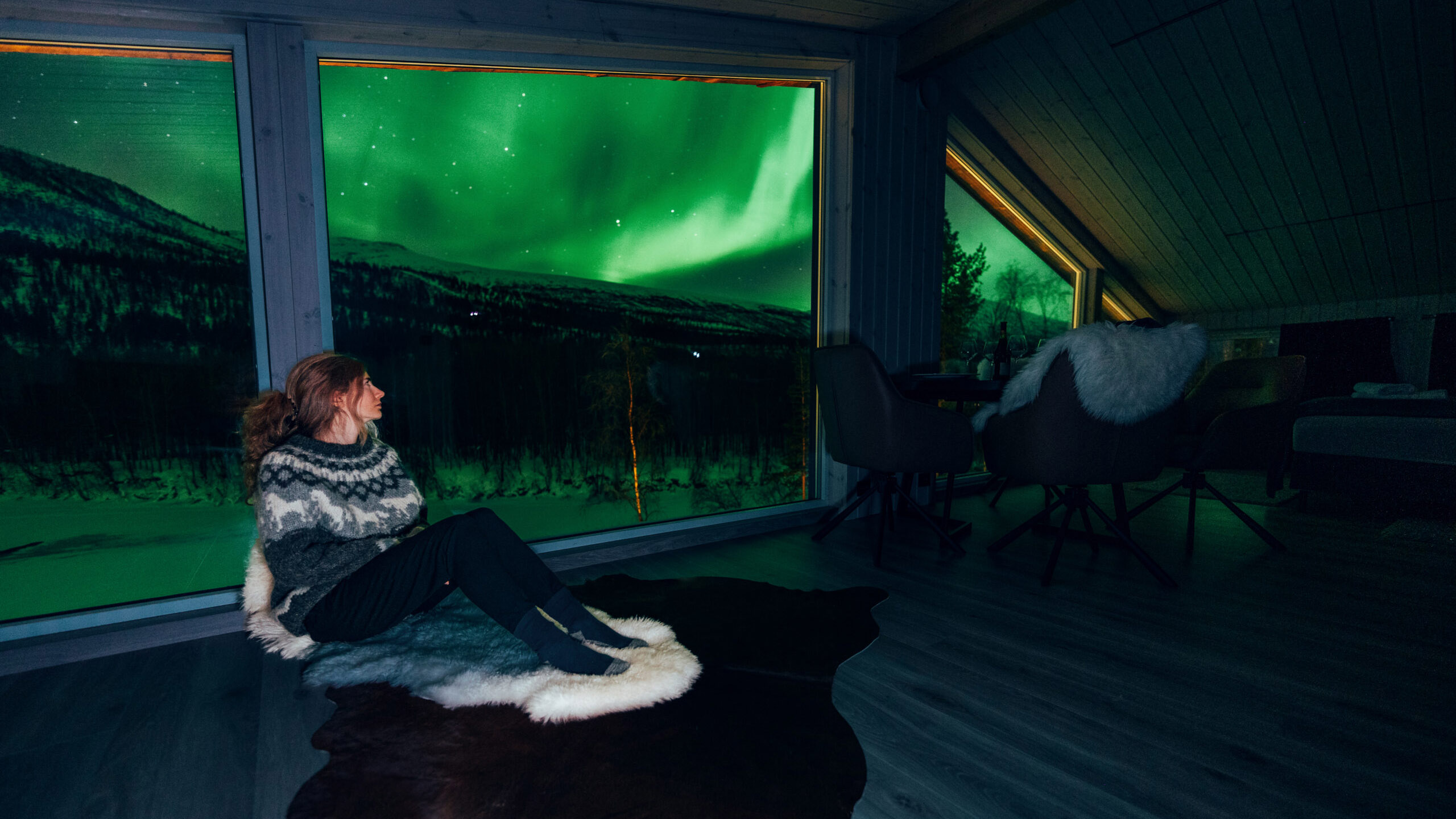 Reisa Lodge is built in a cozy classic style with a restaurant, Bivrost bar, fireplace lounge, TV room, meeting room, rooftop terrace and large suites with private bathrooms or some even with own kitchen.